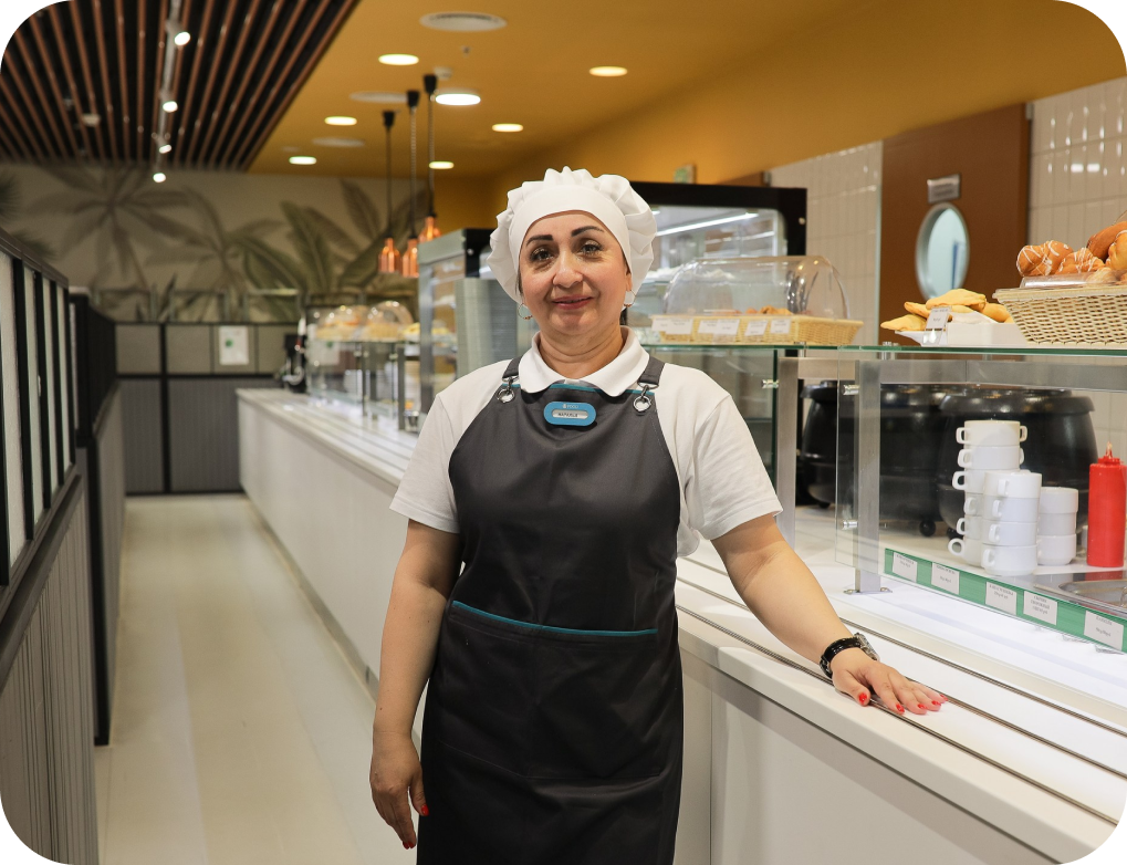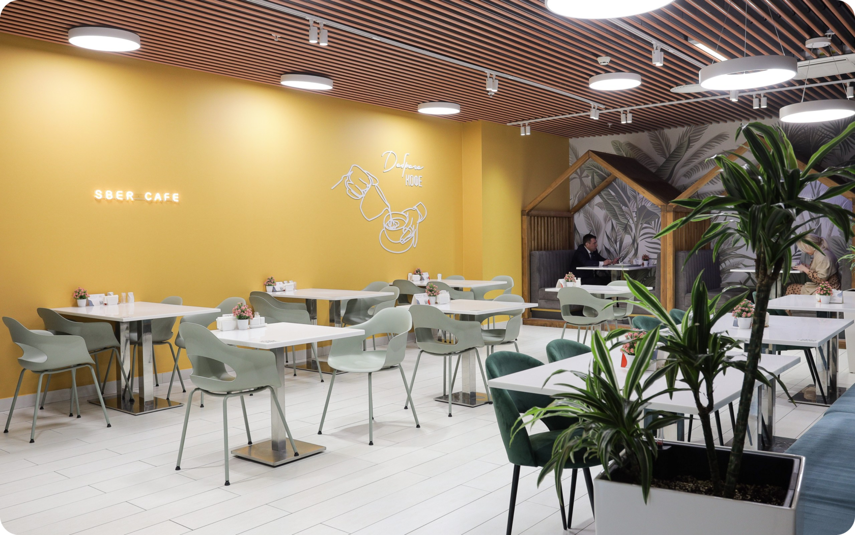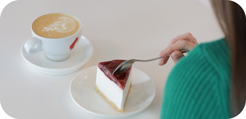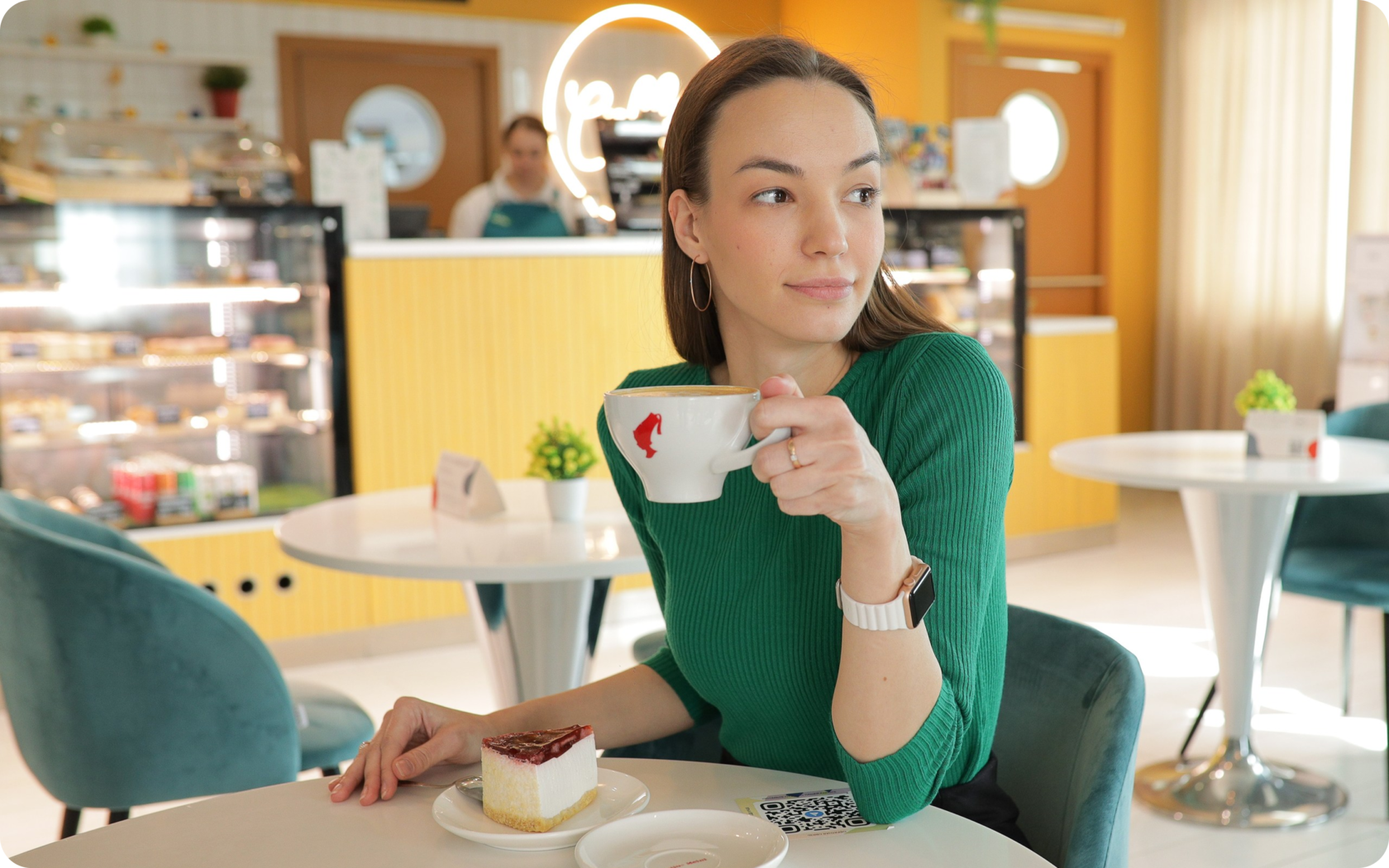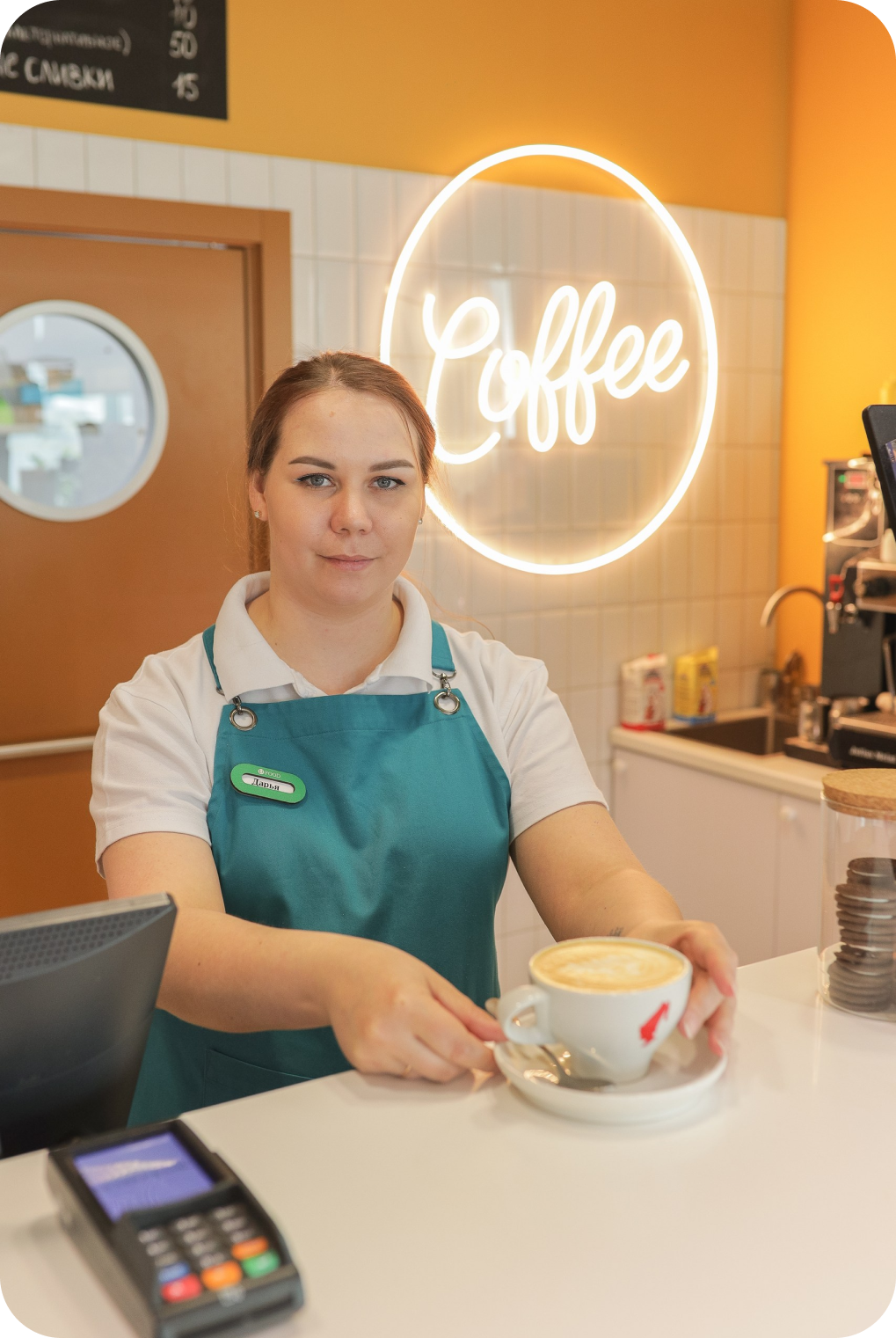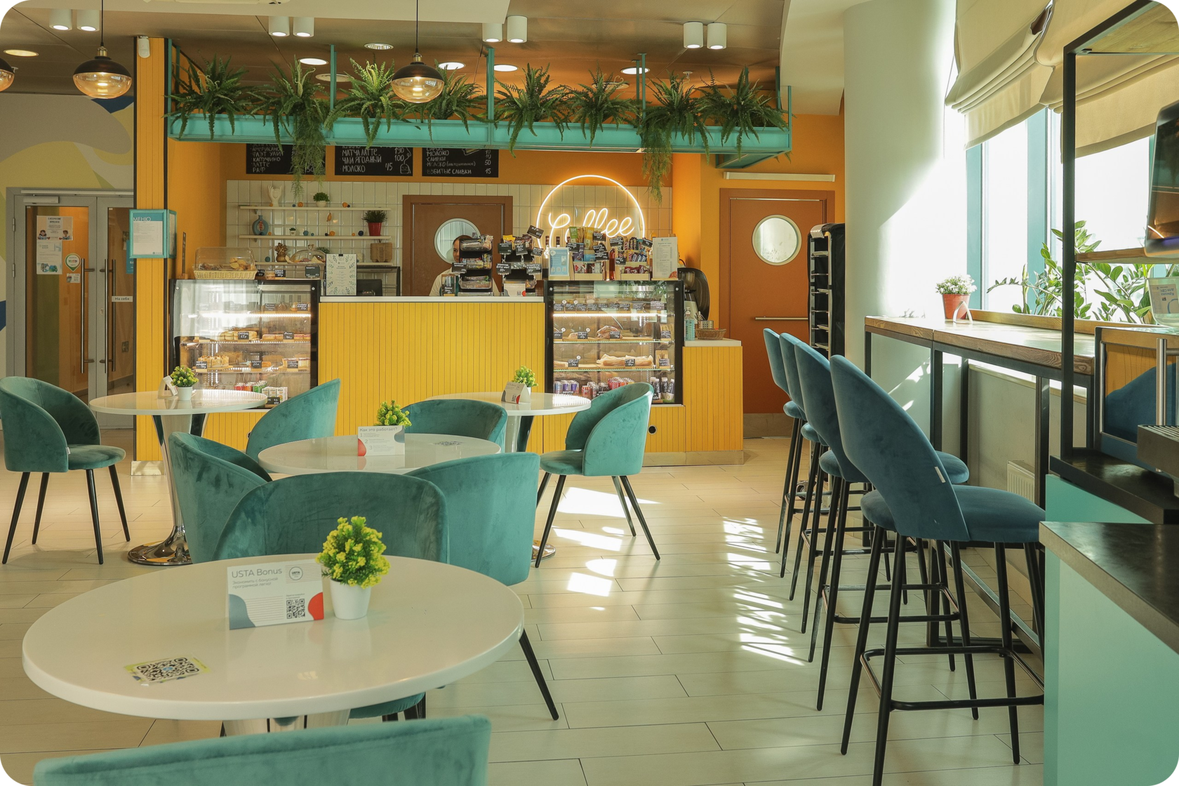 Делаем акцент на вкусном кофе, десертах и выпечке. Предлагаем нашим гостям расширенную кофейную карту (кофе без кофеина, безлактозное молоко, альтернативное молоко), смузи, свежевыжатые соки, низкокалорийные десерты, сезонно обновляем меню.